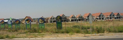この国も住宅の建設ラッシュのようだ。同じような形の一戸建ての家が建築中だった。(写真左右)