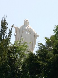 サンクリストバルの丘には大きなマリア像が建っていた。中南米諸国ではキリストよりマリアを