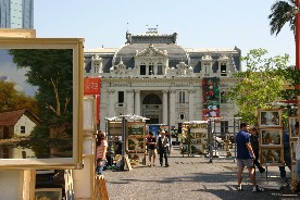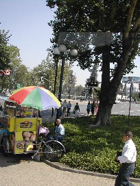 この公園は絵描きさん達の公園でもあった。たくさんの絵を並べて売っていた。(写真上)