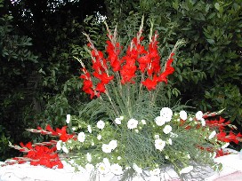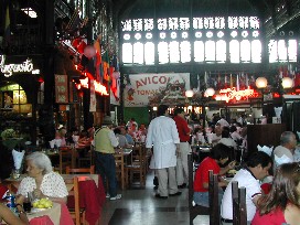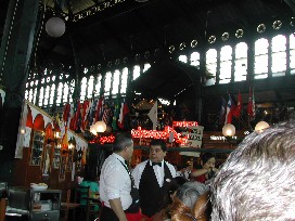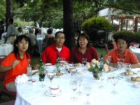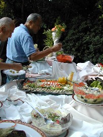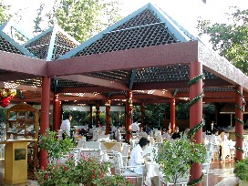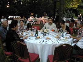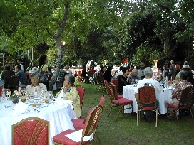 売る店がたくさん並んでいた。その内の一軒が昼食会場であった。田舎風の建物の裏庭に屋