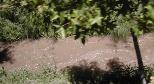 大きな川の上も渡った。この川の水は濁った水と澄んだ水が混ざり合う事なく並行して流れていた。(写真4)