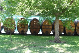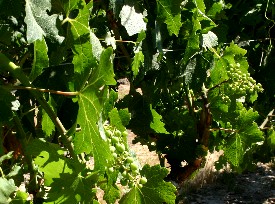 郊外には見渡す限りのブドウ畑が広がり(写真左)、その畑の奥の方にはワイナリーらしき白い建物があった。(写真右)