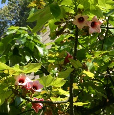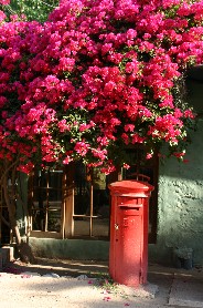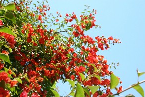 この食堂の裏庭にあったブーゲンビリア(写真左)とアンズ(写真右)