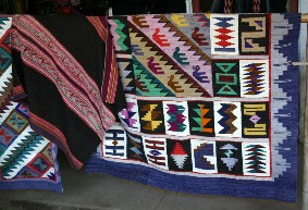飾品もあった。私は素焼きの皿にインカ風の絵を描いたものを二枚を買った。家内は縞模様が