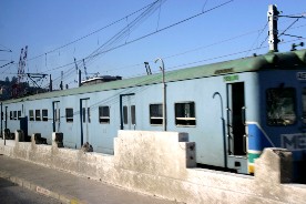 バスは海岸線に沿って走った。途中には駅がありこんな電車が停まっていた。(写真左)