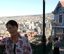 熟年女性三人組、バルパライソの町をバックに。(写真左)