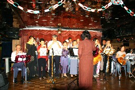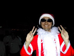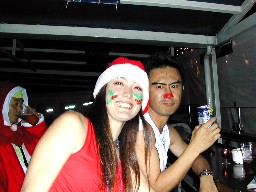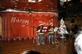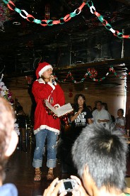クリスマスイブの夜、プールサイドのデッキではかくも賑やかな催し物が。