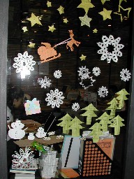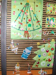 掲示板の中には皆さんが作ったクリスマス関連の作品が展示されていた(写真上二枚)