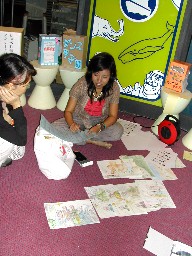 一方、翌日の新聞発行の準備や次の催し物などの準備も進んでいた(写真上二枚)