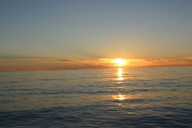 そんな大海原に太陽は沈んでいく。静かな海の夕焼けが全天を覆いとても幻想的な雰囲気となる(写真上十一枚)