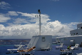 従って、イースター島沖合の停泊が一日延び、先に上陸したものは船の上でのんびりと過ごした。