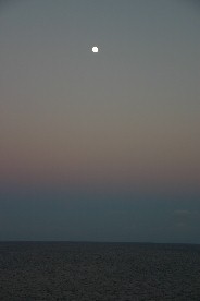 まだ、夜も明けやらぬ早朝にデッキに出てみると上空には満月が残っていた。そうか夕べは十五夜だったのか。