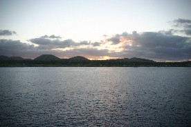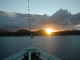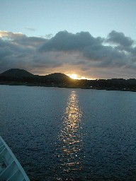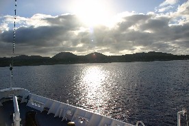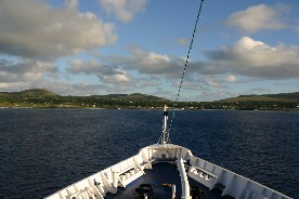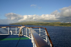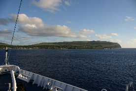 着替えを済ませ上甲板の船首デッキに出た頃は、薄明かりの中に島影がくっきりと見え始め