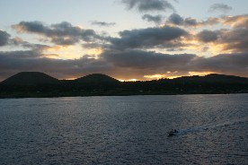 早朝、トパーズ号はイースター島の沖合に停泊した。船内テレビで見ると町明かりが点々と見