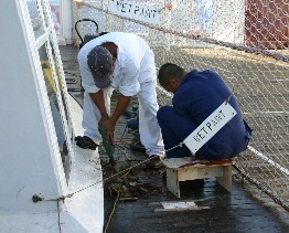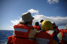うか。大きな船から小さなボートに乗り移るのはなかなか容易な事ではない。過去には転落した人もいたと言うから