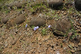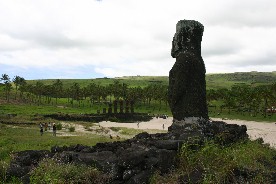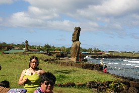 上陸した海岸近くにも幾つかのモアイ像が立っていた。船から見えていたモアイだ。(写真右)