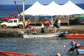 ここでも早速、船の修理が始まった。(写真上)