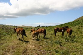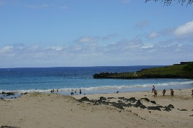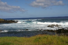 こうして大波の背をいくつも乗り越えながらイースター島へ着いた。海岸近くには、たくさんの