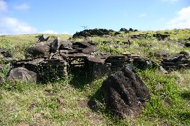 く彼らの村長(むらおさ)を祀ったものだ。従って、モアイの基壇の下には村長のものと思われる