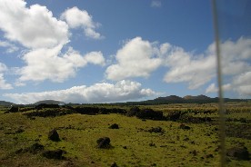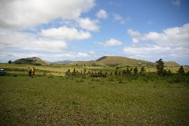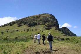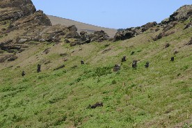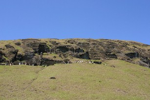 私の旅日記にも書いているように、モアイは「ラノララク」という標高200メートルの山の中腹