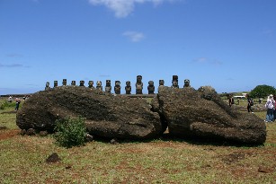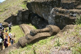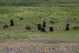 されているようだ。これらほとんどのモアイが顔を地面に向けて倒されているようだ。