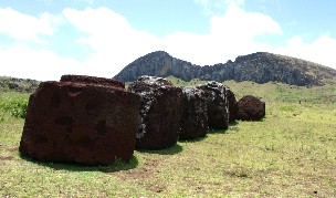 また、モアイの中には頭の上に赤い石を載せたものもあったが、これは帽子ではないようだ。