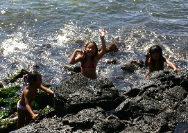 りを楽しんでいた。その波は岸辺近くの岩に当たり白く砕け散っていた。