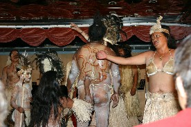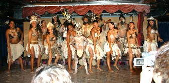 寄港第一日目の夜にはラパ・ヌイ(イースター島)からラパ・ヌイダンシングチームの人達が踊りや民俗芸能を