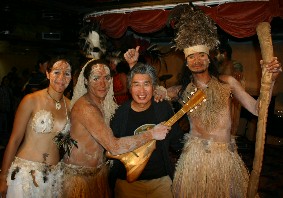 踊りの後は交流会になった。ラパ・ヌイの人達に囲まれて写真撮影。