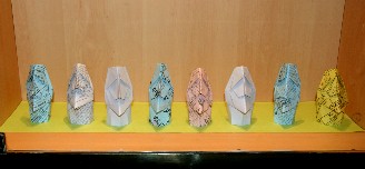 船内の掲示板に並んでいた折り紙のモアイ(写真右)