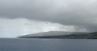 その月も次第に薄くなり白々と夜が明け始めた。すると洋上遙かに島影が見え始めた。待ちに待ったイースター島