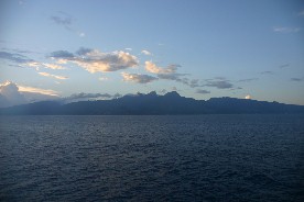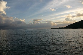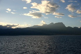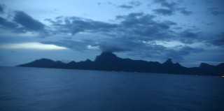 船はとっくに港を離れていた。大急ぎで船上デッキへ上がってみると既に日は落ち左舷にタヒチ