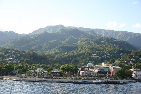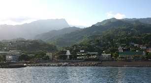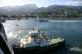 いよいよ入港、ゴーギャンの愛した島タヒチが目の前にあった。(写真説明)