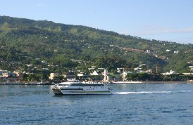となりの島モーレア島との間を行き来する連絡船。(写真左)