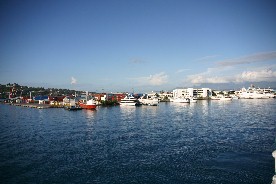 私がデッキに上がったり下りたりを繰り返している内に船はパペーテの港に着いた。ここで家