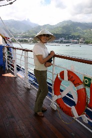 戻りボーディングカードを持って船外に出てみた。タヒチ上陸の第一歩であった。家内は姉妹と