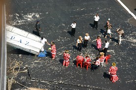 ボートの人達だった。船は高速船なので屋上のデッキにいると吹き飛ばされそうになるくらい風