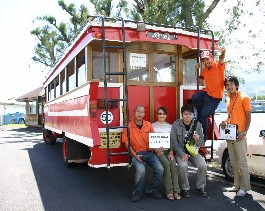 さあ、バスに乗って出発だ。ホテルまではこのバスで。(写真右)