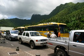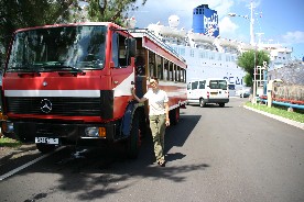 今日の送迎バス。このバスでタヒチ市内観光の人達は街と港を往復した。