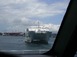 船はいよいよ着岸間近だった。湾内で大きく方向を変えタグボートに船腹を押されて着岸した。
