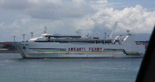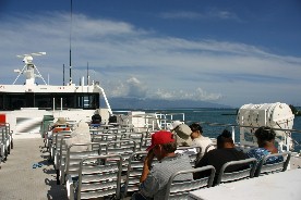私達は手渡された昼食用のサンドイッチと水を持ってバスに乗った。港には双胴船のフェリー