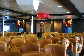 私達は荷物を持ってブロードウエイショーラウンジに集合した。そして、時間を見計らって船外