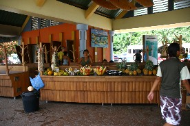 港の売店、さすが南国の島、色んなフルーツが並んでいた。(写真左)