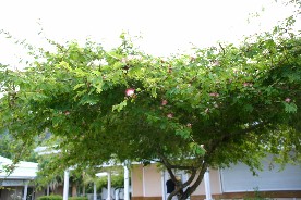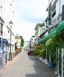歩いたとは言っても連絡船から下りてほんの少しだけ。ガジュマルのようなこんな木も、そしてこんな通りも。(写真左右)
