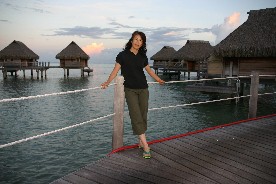 海上コテージの前で泳いでいたタヒチの若い男女。写真を撮らせて欲しいというと喜んで応じてくれた。(写真左)