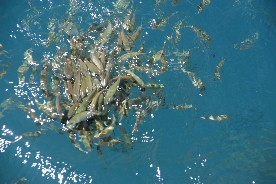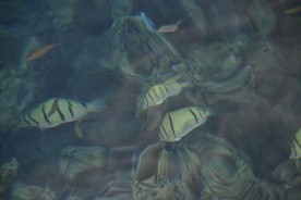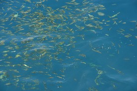 すると白人夫婦がパンを海面に投げていた。その餌に小魚が盛り上がるように群がっていた。