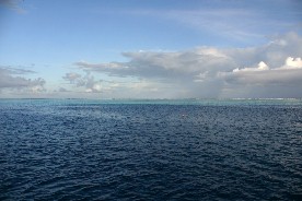 が強かった。遠ざかるモーレア島の珊瑚礁がブルーに輝き、今まで見たこともないほど鮮やか