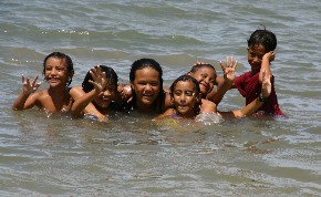 の海岸では、この島の子供達が五人くらい遊んでいた。あまりにも楽しそうなのでカメラを向け
