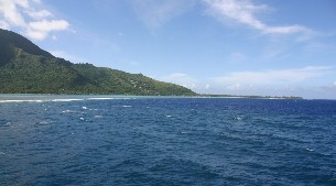 空には雲が懸かっていた。しかし、気になるようなお天気ではなかった。さあ、待ちに待ったタヒチだ。(写真左)