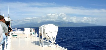 あわてて船上に出てみると船はタヒチ本島からもモーレア島からも遠く離れていた。(写真左右)
